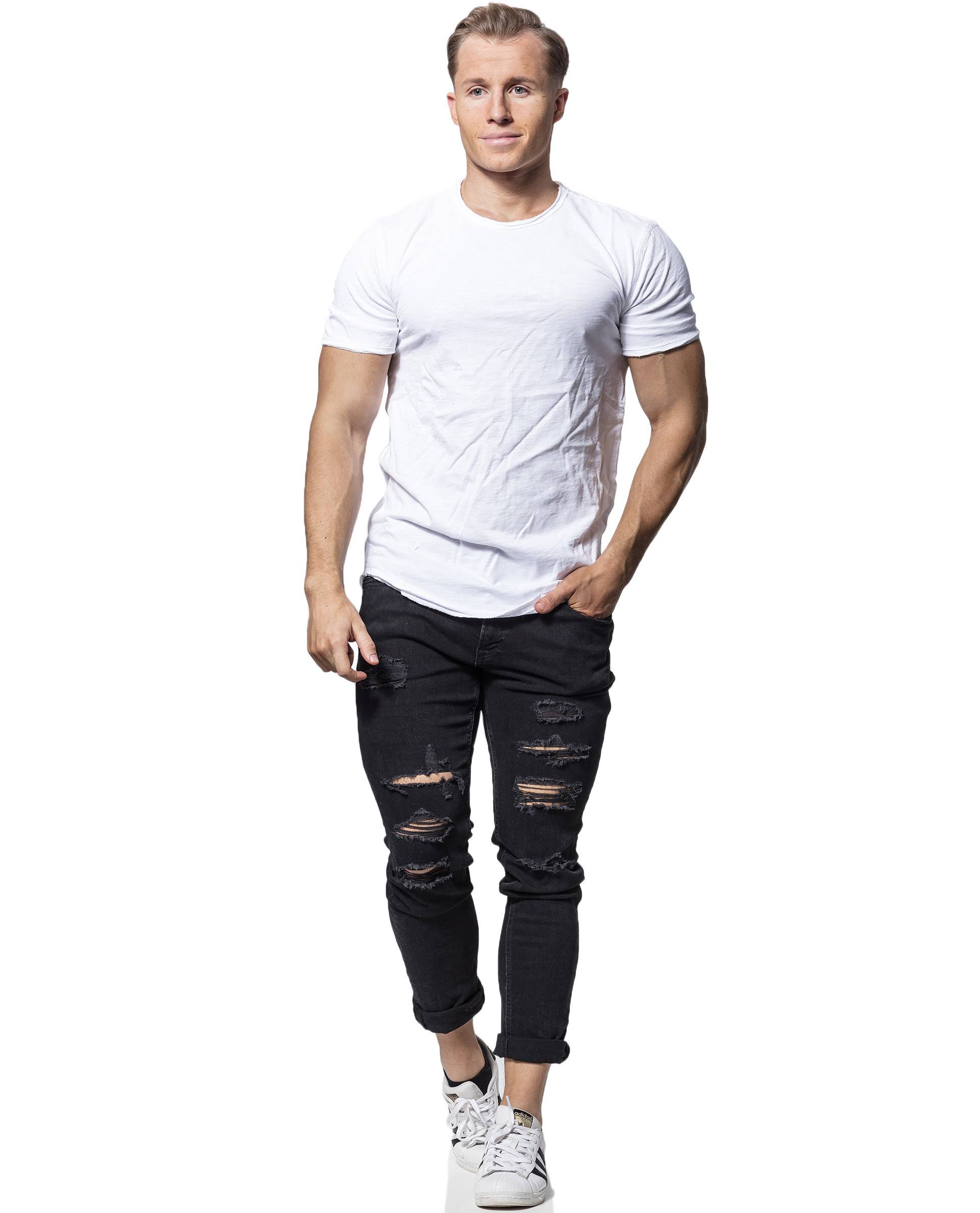 ONLY & SONS valkoinen t-paita. Hieman paksumpi kangas, siisti pystysauma selässä. Viimeistelemättömät saumaukset, pidempi pyöristetty helma.