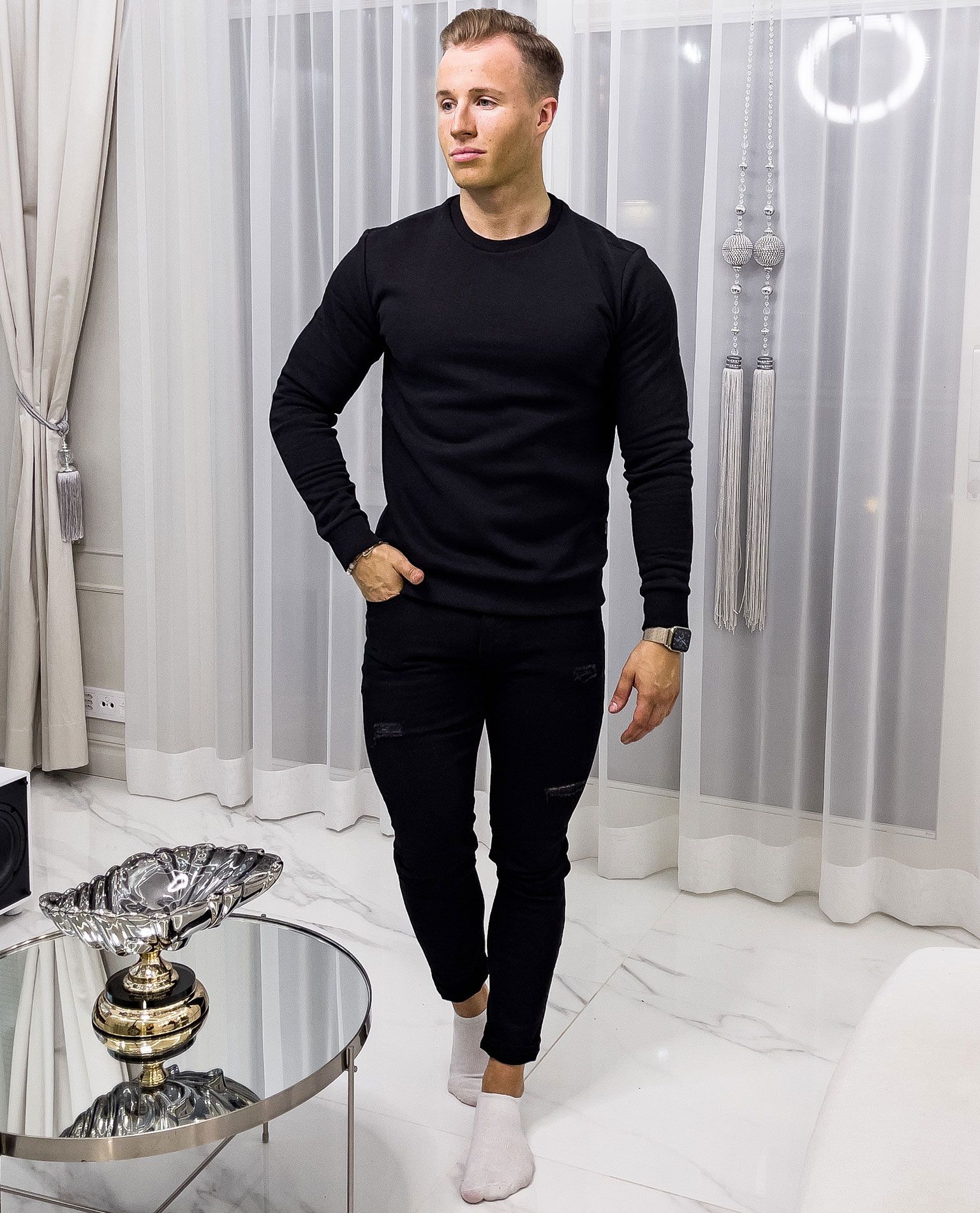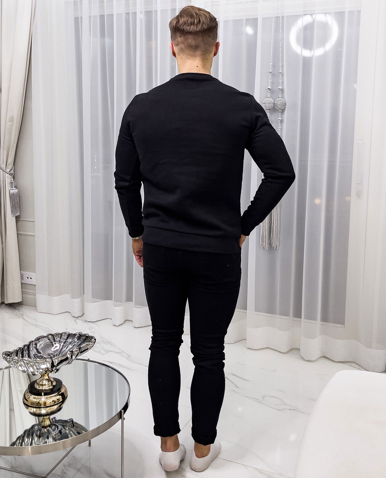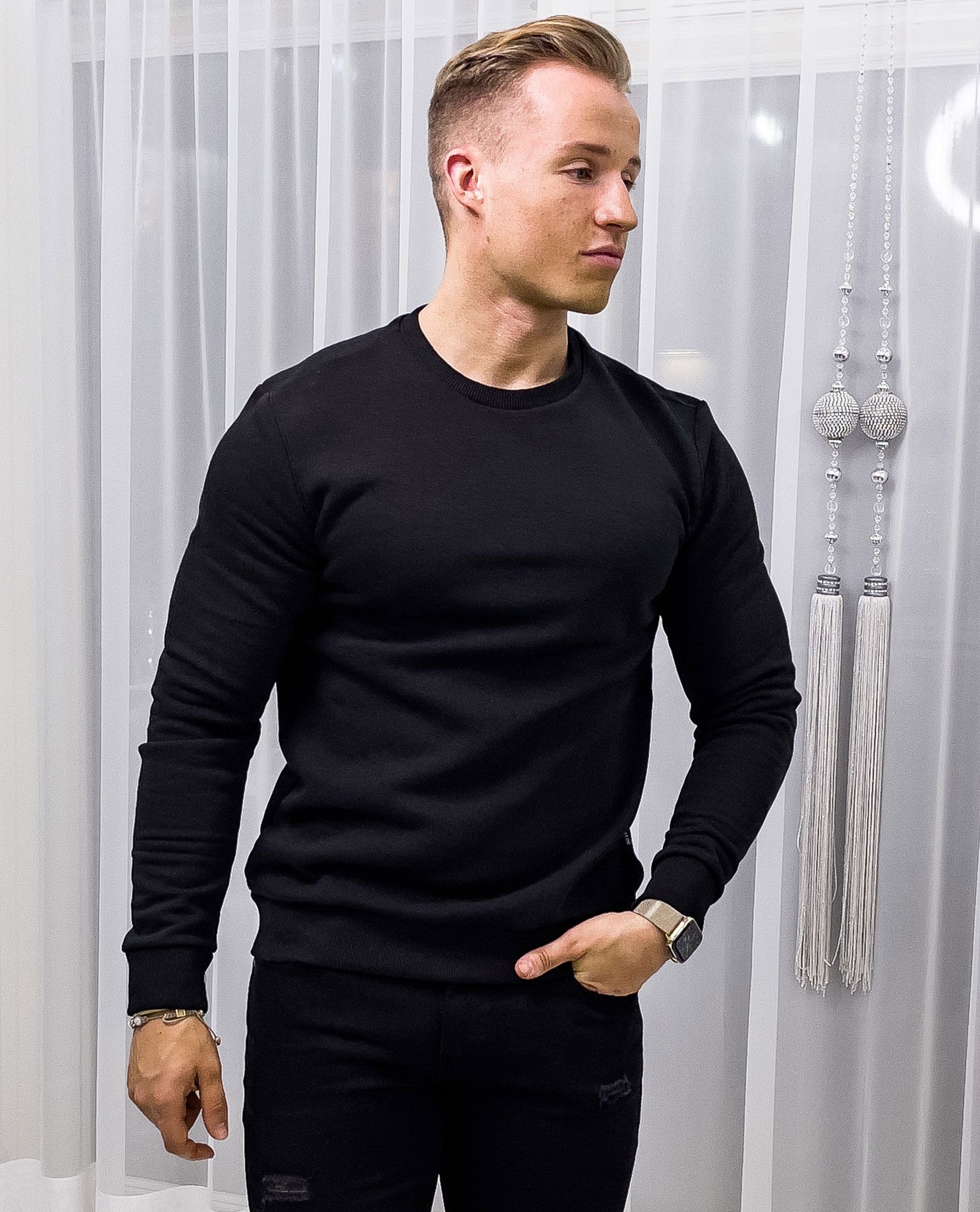 ONLY & SONS musta collegepaita. Pehmeä, harjattu pinta sisäpuolella. Erinomainen peruspaita arkeen ja kotiin. Resorit helmassa ja hihoissa.