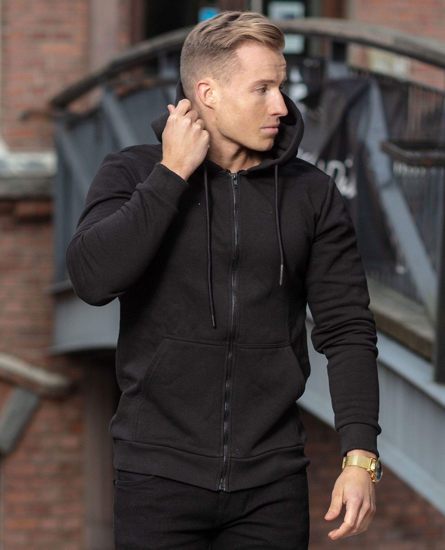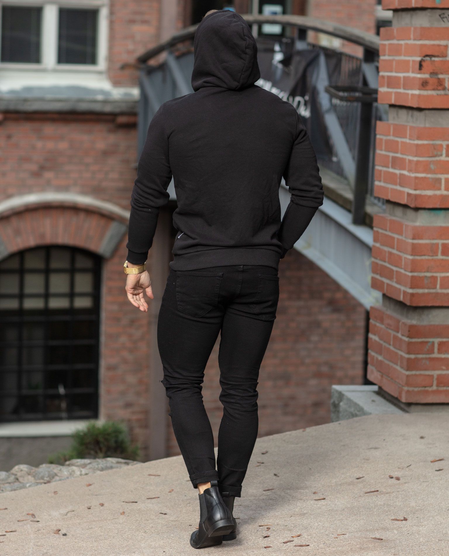 ONLY & SONS musta huppari. Pehmeä, harjattu pinta sisäpuolella. Erinomainen perushuppari arkeen ja kotiin. Resorit helmassa ja hihoissa.