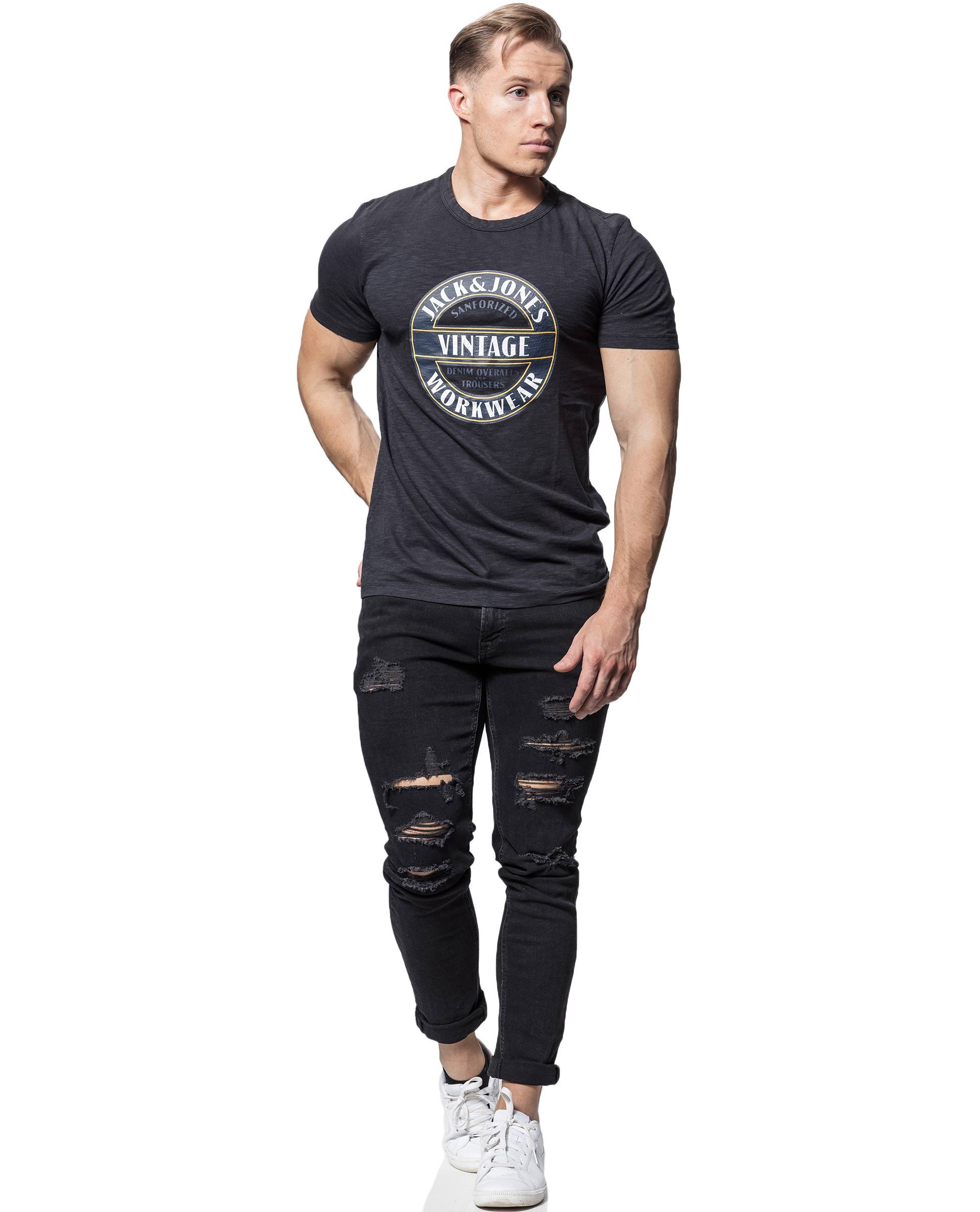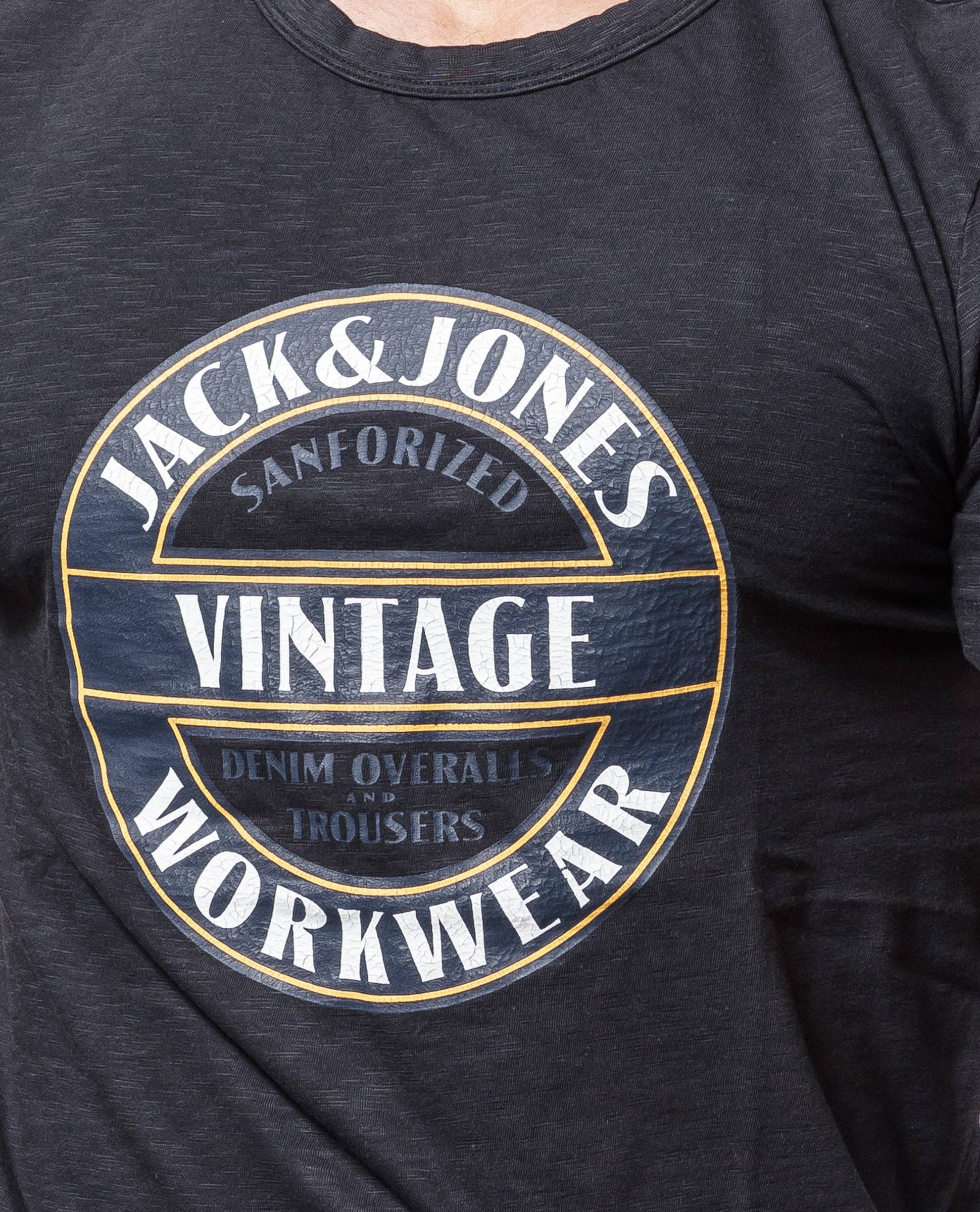 JACK & JONES musta t-paita. Printtikuvio rinnassa.