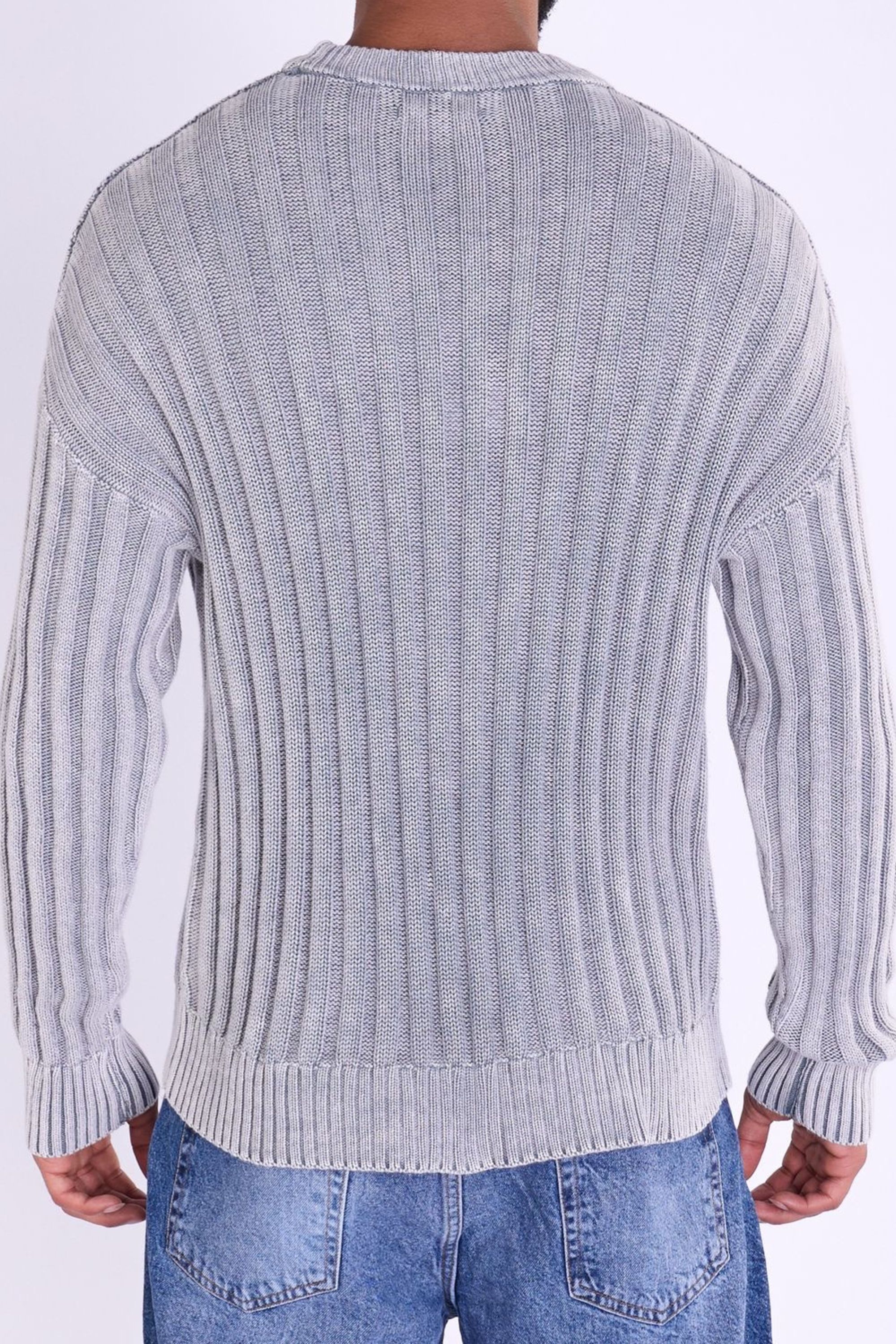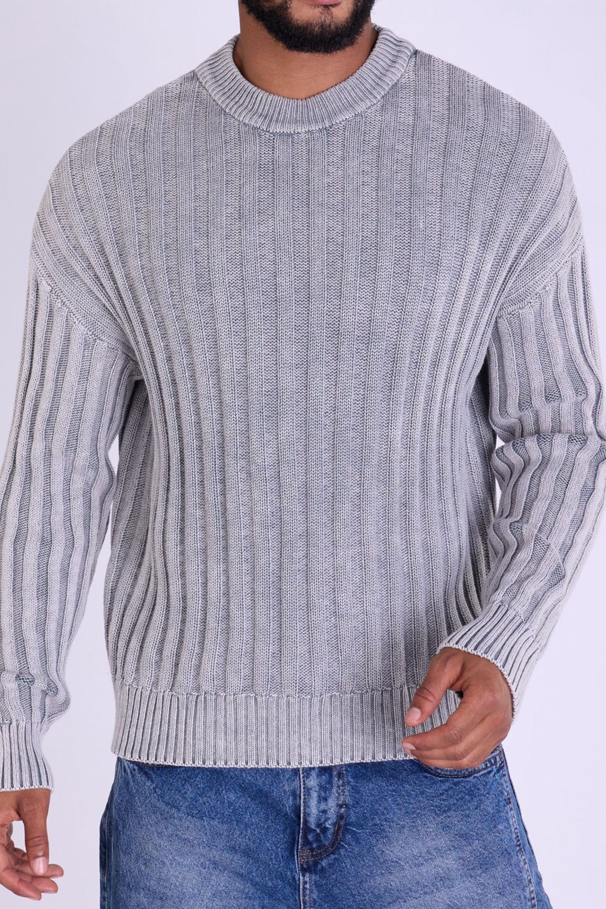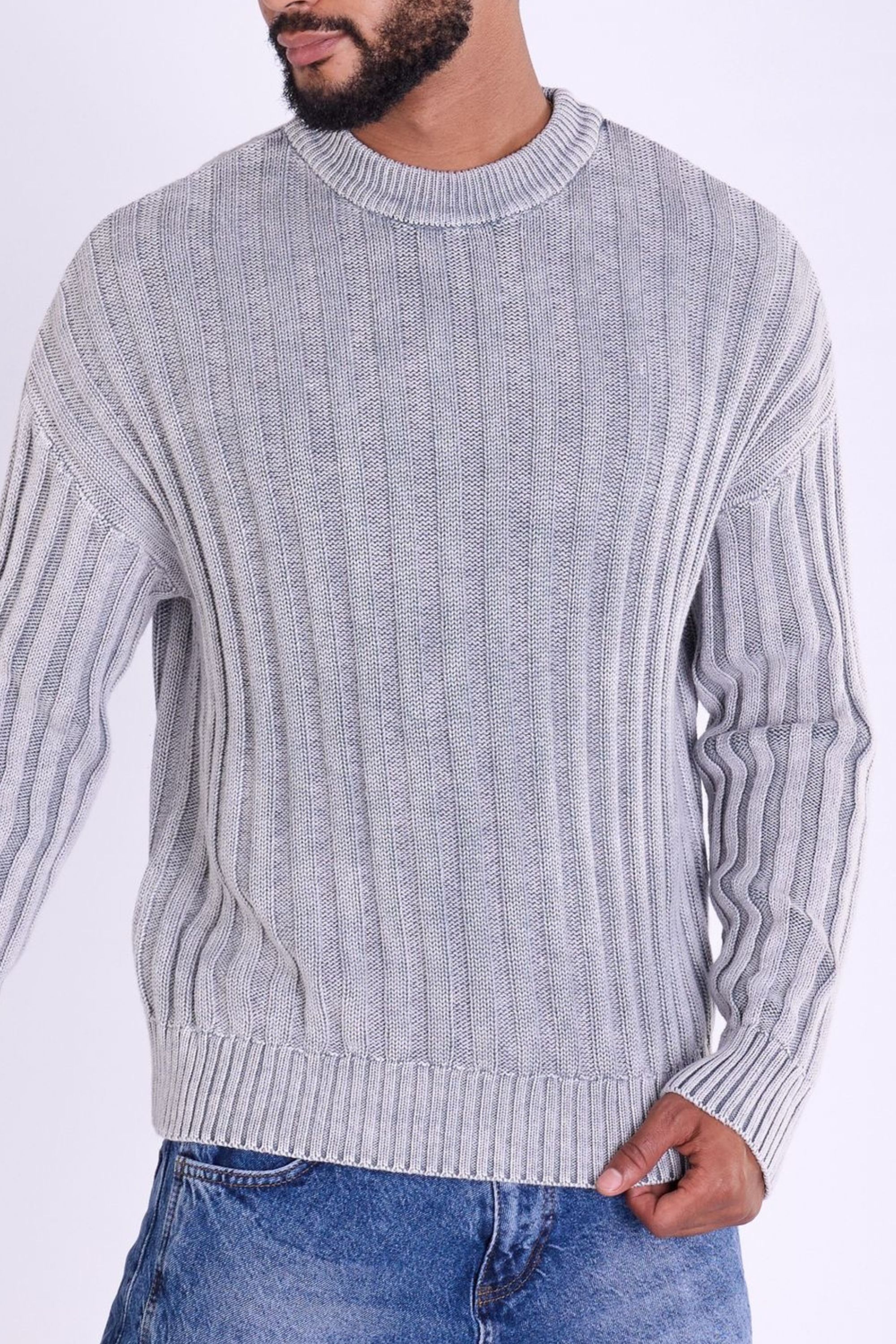 Harmaa pehmeä neule pystyraidoilla JERONE