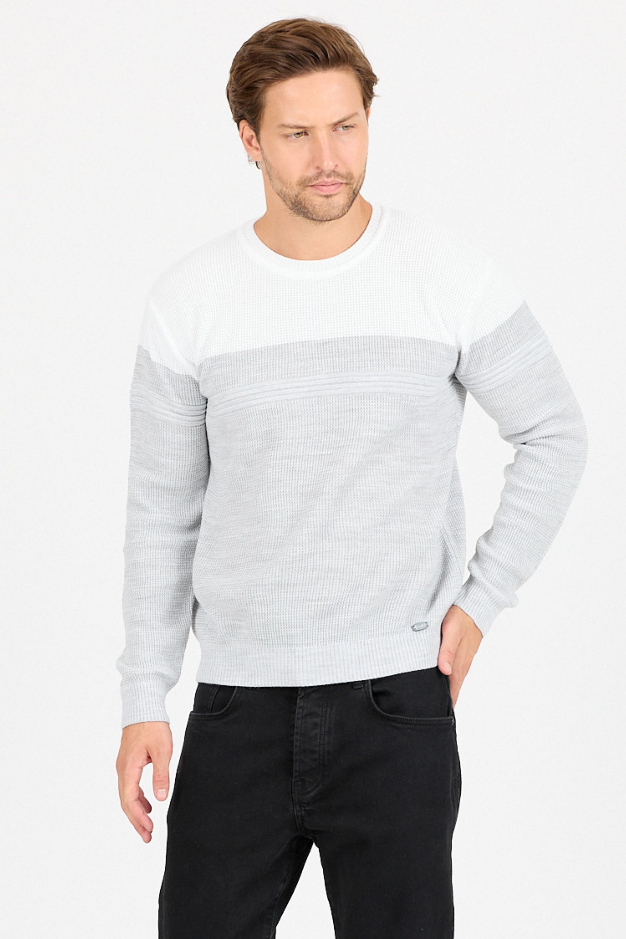 - Tuotepolku Etusivu Miesten Neuleet Harmaavalkoinen pehmeä neule Jerone