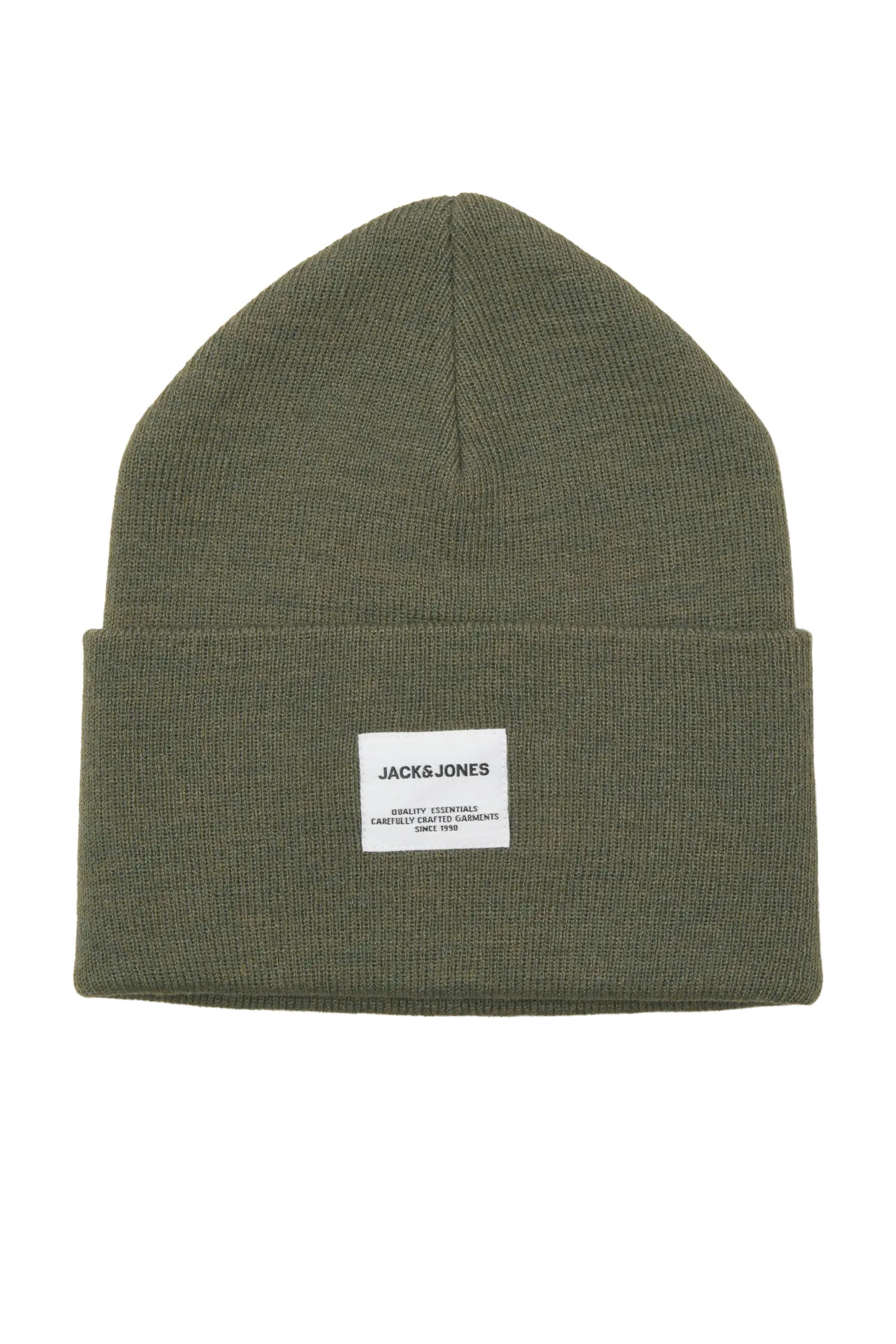 JACK & JONES tummanvihreä pipo. Käännetty reuna, jossa logo.