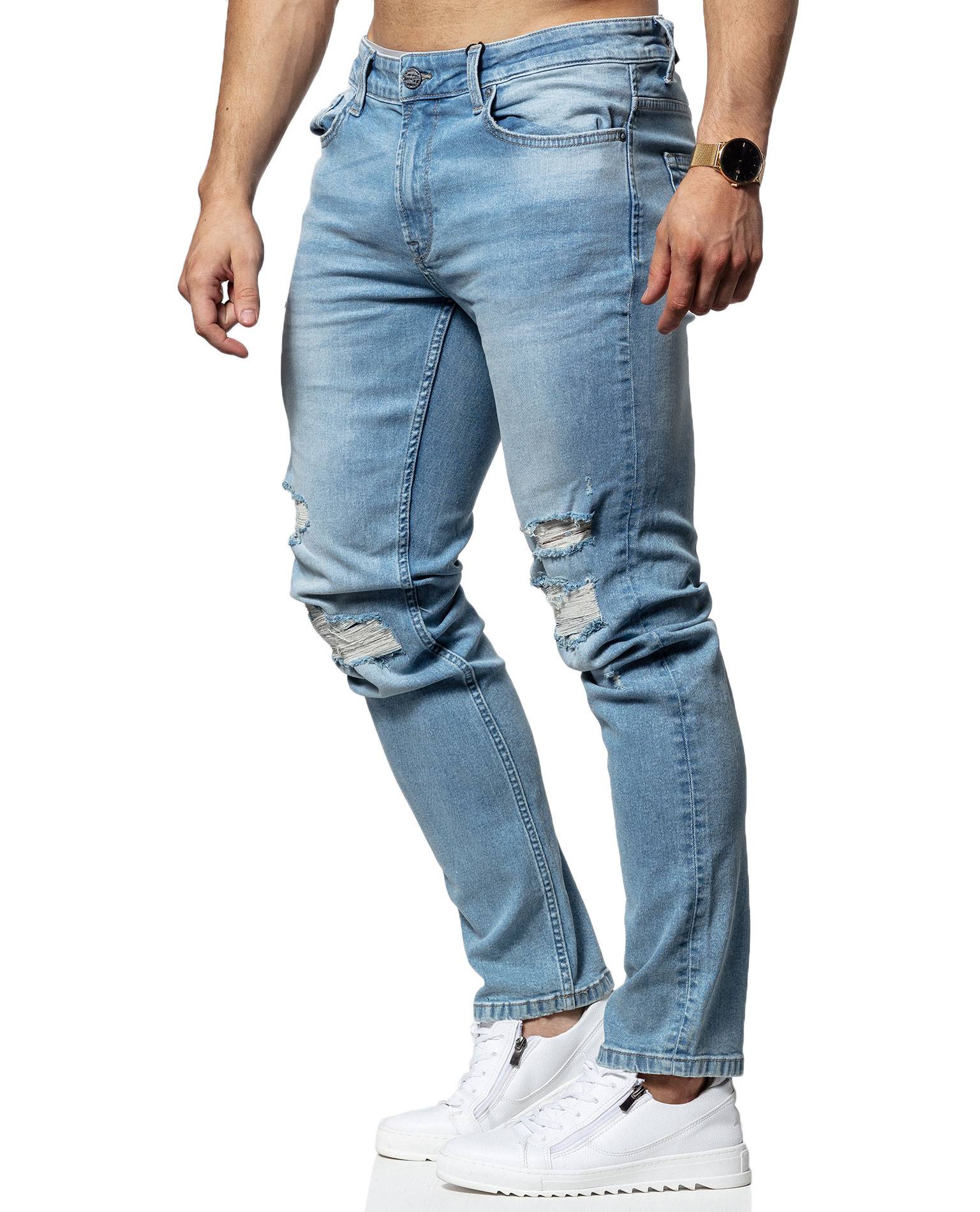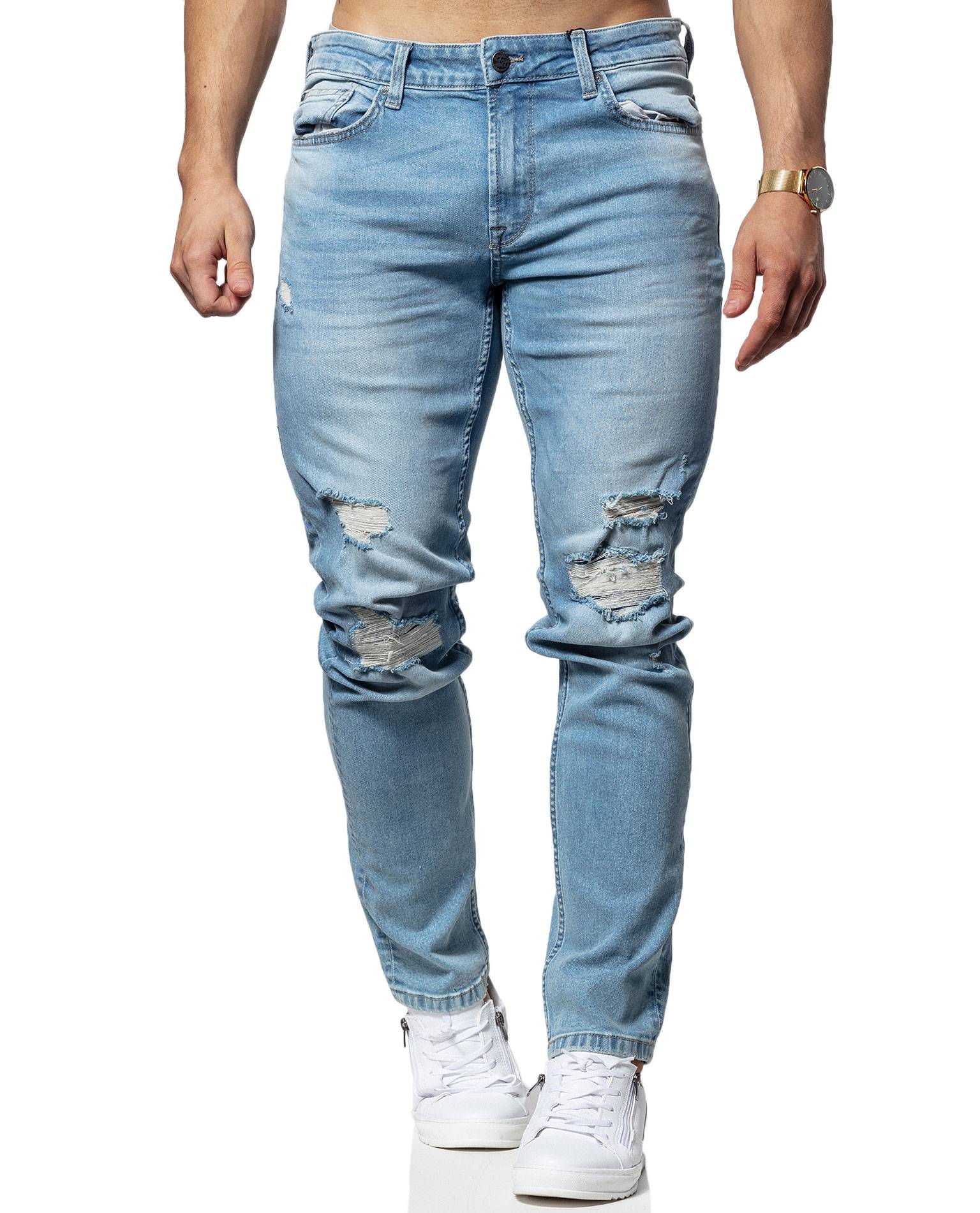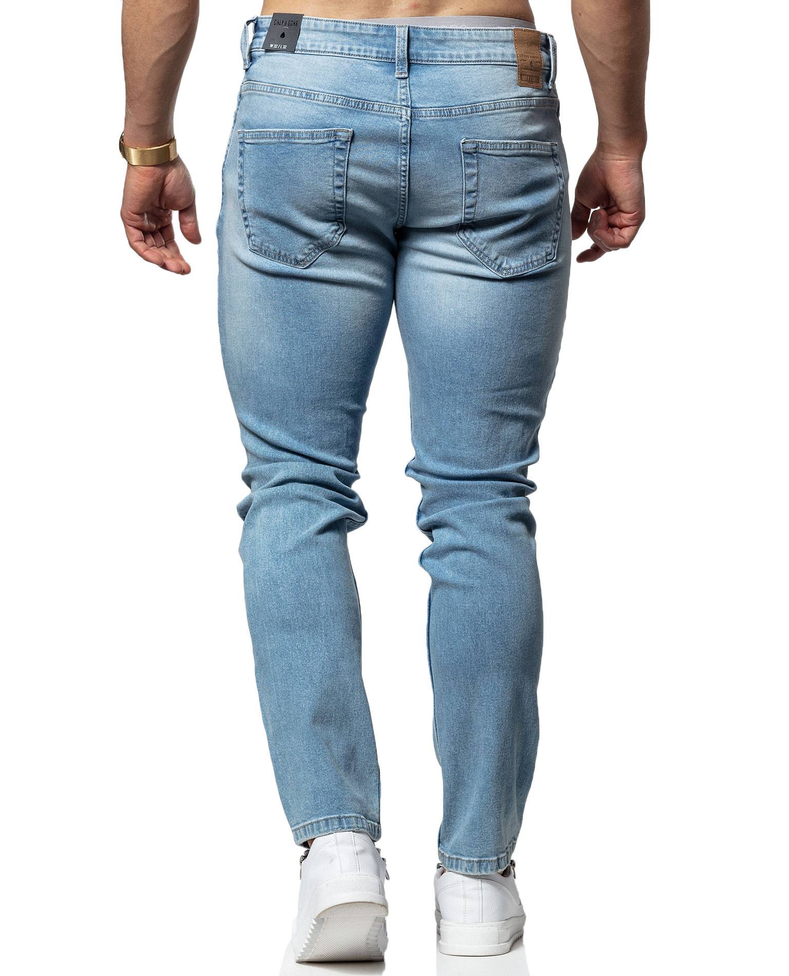 ONLY & SONS vaaleansiniset farkut. Erittäin joustava materiaali, mukava päällä. Rikottua pintaa polvissa. Kahdet etu-ja takataskut. Hennosti kivipesua kauttaaltaan. Pituus L34.