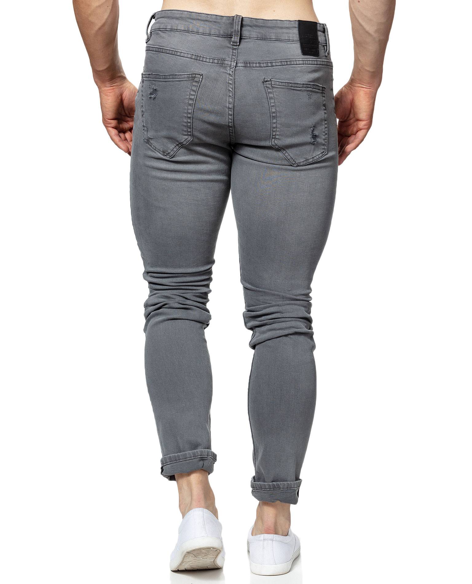 ONLY & SONS harmaat farkut. Hieman rikottua pintaa, nappikiinnitys sepaluksessa sekä kahdet etu-ja takataskut. Suht slimmi istuvuus, mutta ei ole punteista täysin pillit. Pituus L34.